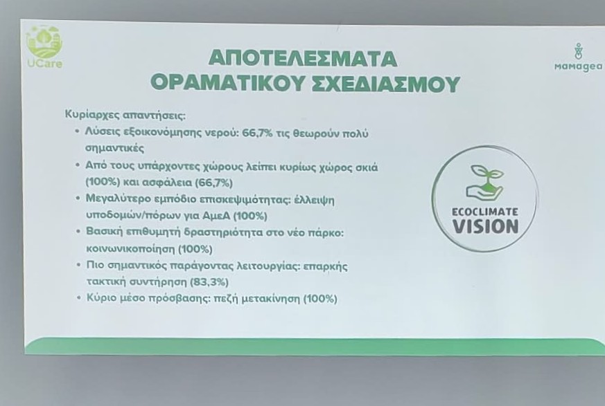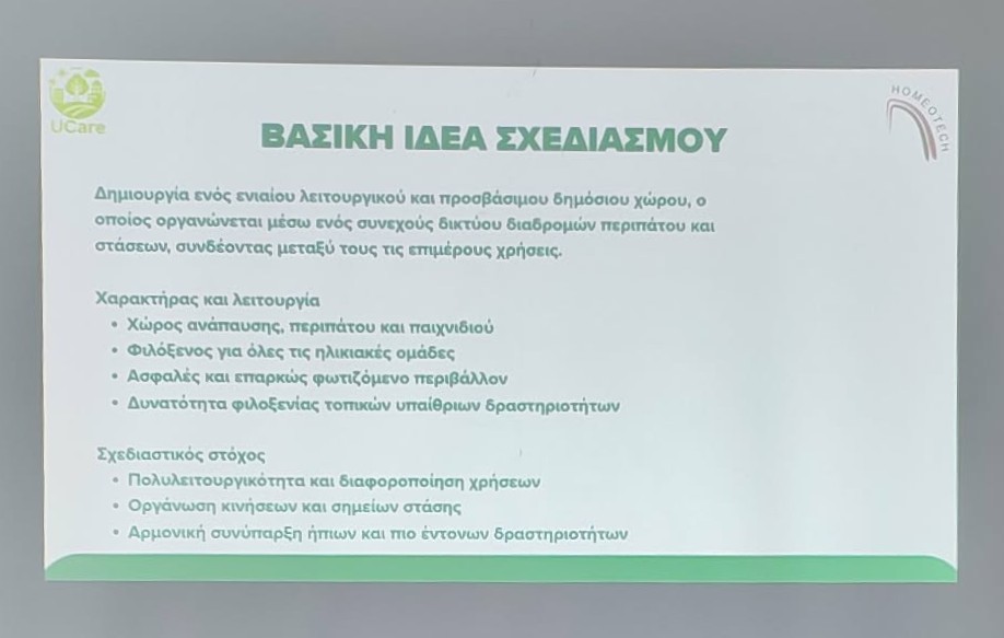 Η συμβολή μας: Καταθέσαμε συγκεκριμένες προτάσεις ώστε το πάρκο να μην είναι απλώς ένας χώρος πρασίνου, αλλά ένα σημείο συνάντησης, πολιτισμού και παιχνιδιού που θα ανταποκρίνεται στην καθημερινότητά μας. Η συμμετοχή στο ευρωπαϊκό έργο UCare (Interreg) διασφαλίζει ότι το έργο θα κατασκευαστεί βάσει χρονοδιαγράμματος (Αύγουστος 2027), με υψηλής ποιότητας υλικά και θα έχει τη σφραγίδα των ανθρώπων που θα το ζήσουν.