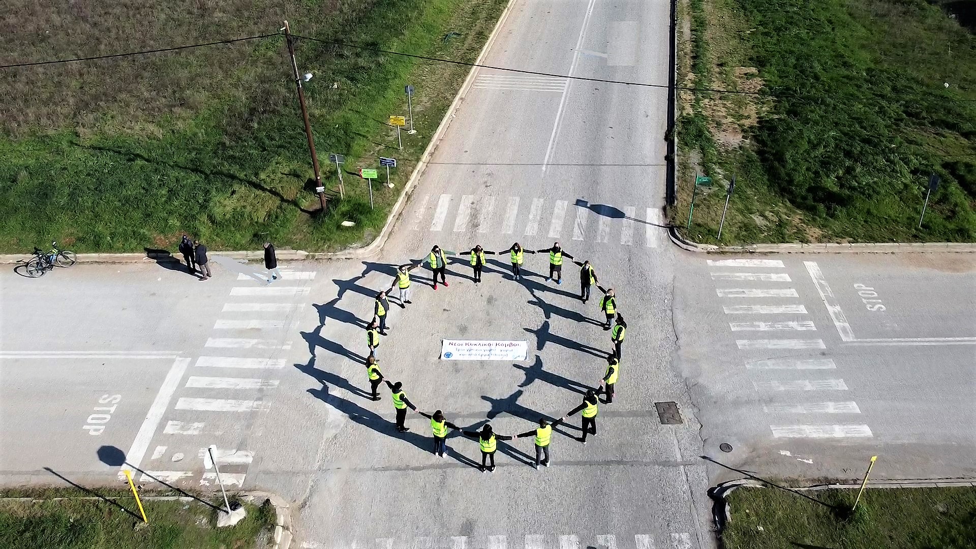 Μέλη του Συλλόγου Επί συγκεντρώθηκαν στη συμβολή των οδών Απ. Κουγιάμη με Αθ. Διάκου και σχημάτισαν με τα χέρια τους έναν κύκλο, διαμαρτυρόμενοι για την καθυστέρηση στην υλοποίηση ενός σημαντικού έργου. Οι δύο κυκλικοί κόμβοι, που εξαγγέλθηκαν από το Δήμο Θέρμης, αμέσως μετά από ένα θανατηφόρο δυστύχημα πριν τρία χρόνια, στο σημείο της διαμαρτυρίας, δεν έχουν ακόμη κατασκευαστεί. Παρά την εύρεση κονδυλίων και την επικινδυνότητα του δρόμου οι εμπλεκόμενοι φορείς κωλυσιεργούν, θέτοντας σε διαρκώς αυξανόμενο κίνδυνο τους κατοίκους της περιοχής και τους διερχόμενους οδηγούς.